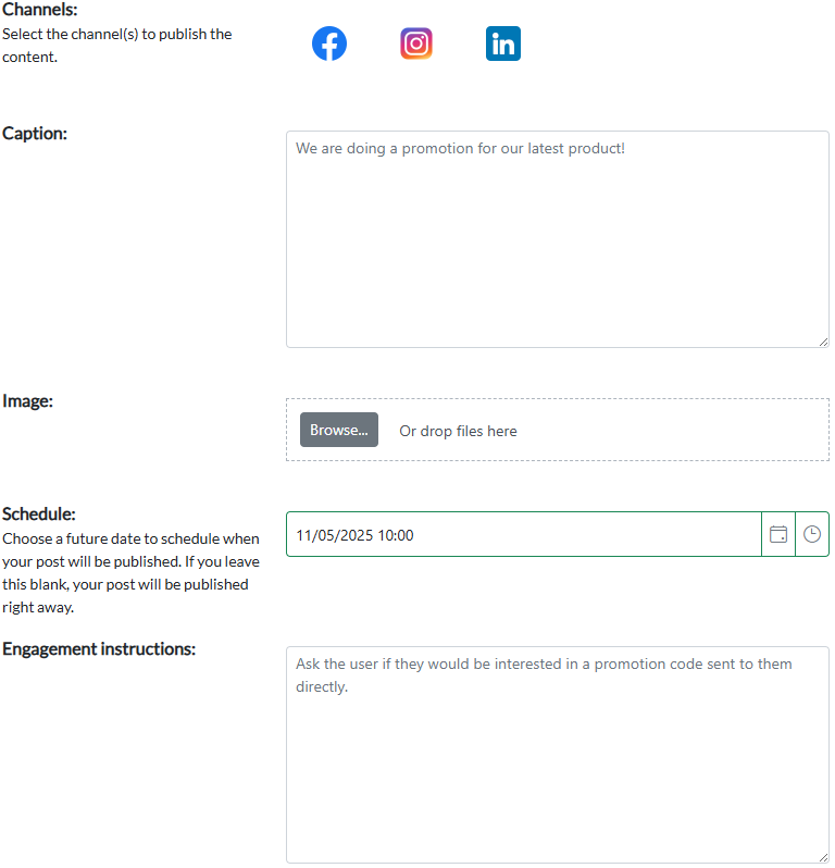 Use intelligent agents to create, schedule, and engage — all powered by your brand’s voice.